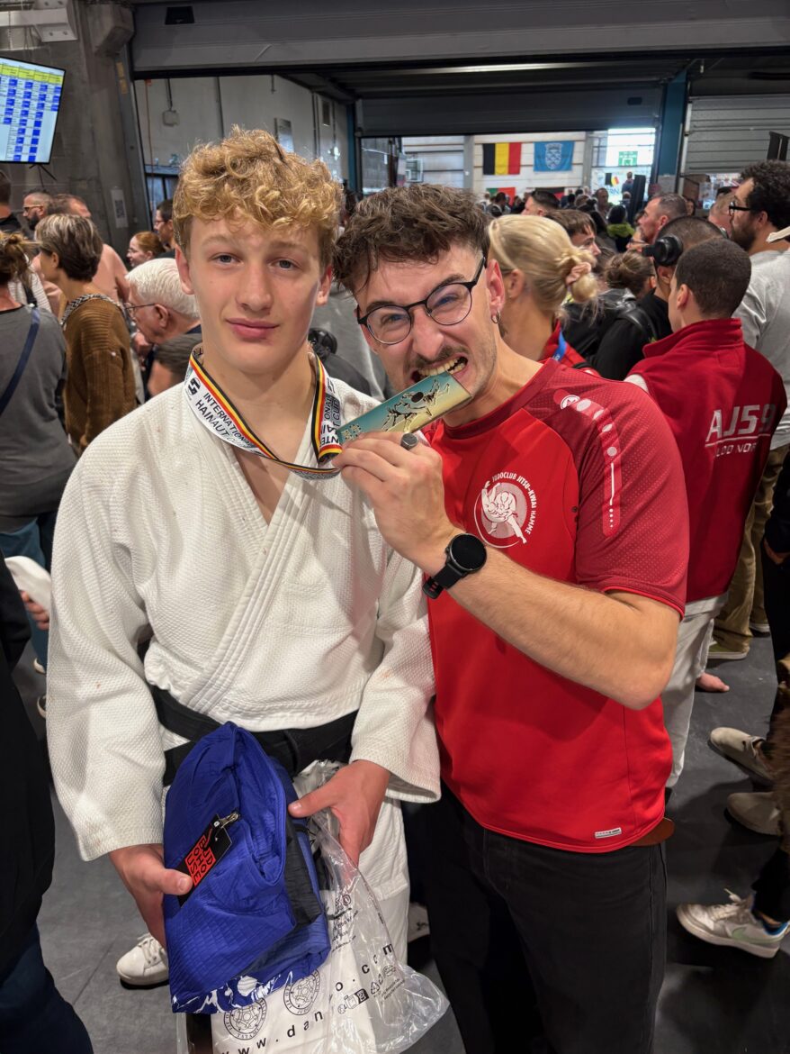 Afgelopen zaterdag trokken onze U15 en U18 judoka’s over de taalgrens voor de International Hainaut Cup. Het tornooi was volledig volzet en bood een sterk internationaal deelnemersveld. Met poules gevolgd door een dubbele herkansingsreeks stond het garant voor véél kwalitatieve kampen — maar ook voor een lange, slopende dag voor zowel judoka’s als coaches. De eerste kamp startte al om 9u ’s morgens, de laatste pas om 21u30. Letterlijk een dag van klokje rond!